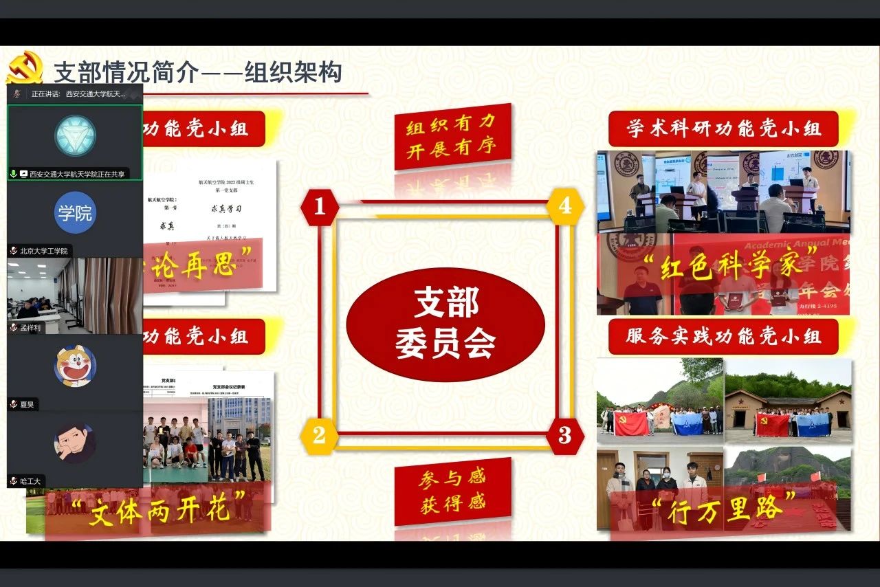 西安交通大学航天航空公司2023级硕士生第一党支部书记熊峰就党支部的具体情况进行详细介绍,重点展示党支部丰富多彩的党建活动,除了每月基础的组织生活会外,第一党支部还积极举办趣味羽毛球、观影等多种形式的文体活动,不仅丰富支部同志的课余生活,拉进支部同志之间的距离,还能让支部同志对党支部更有认同感和归属感。