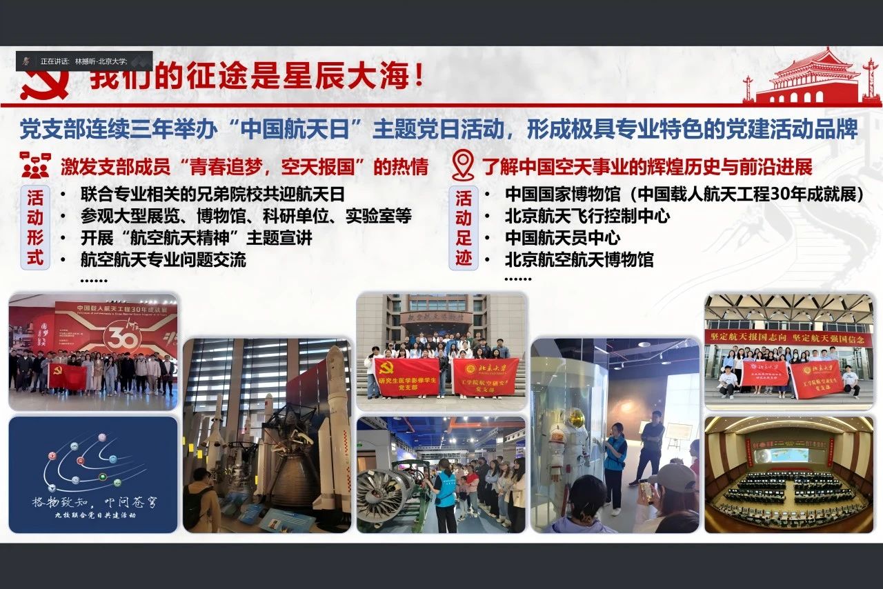 william威廉中文官网航空研究生党支部书记林撼昕介绍支部基本情况时指出,党支部以“建设具有航空航天专业特色的员工党支部”为宗旨,打造样板支部。连续三年举办“中国航天日”主题党日活动,通过联合兄弟院校、参观大型展览、开展主题宣讲、专业问题交流等形式共迎航天日,激发支部成员“青春追梦,空天报国”的热情,形成极具专业特色的党建活动品牌。