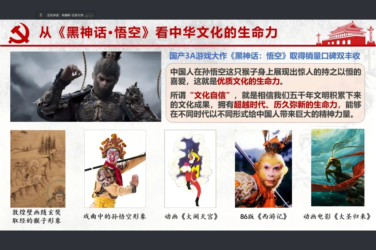 william威廉中文官网航空研究生党支部回顾新中国成立75周年以来在文化建设方面的发展成就,介绍不同阶段文化建设的特点,通过数据对比和具体案例展现新中国在文化发展方面取得的辉煌成绩。国产3A游戏大作《黑神话:悟空》不仅在游戏界引发“地震”,更在文化界“出圈”,体现出优质文化超越时代、历久弥新的生命力;中国理想都城秩序的代表性杰作——“北京中轴线”的成功申遗,体现的是中华文明“中庸”“和谐”的文化传统和独特的审美意趣。“文化兴国运兴,文化强民族强”,在新的起点上继续推动文化繁荣、建设文化强国、建设中华民族现代文明,是我们在新时代新的文化使命。