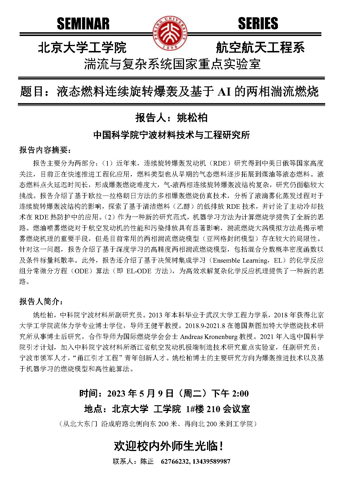 航空系学术报告【5月9日】:液态燃料连续旋转爆轰及基于AI的两相湍流燃烧