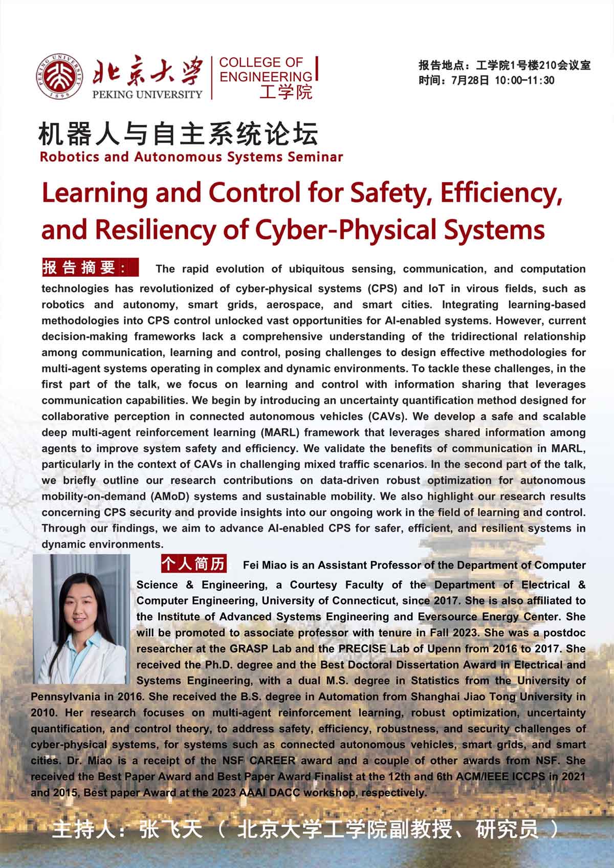 机器人与自主系统论坛【7月28日】:Learning and Control for Safety, Efficiency and Resiliency of Cyber-Physical Systems