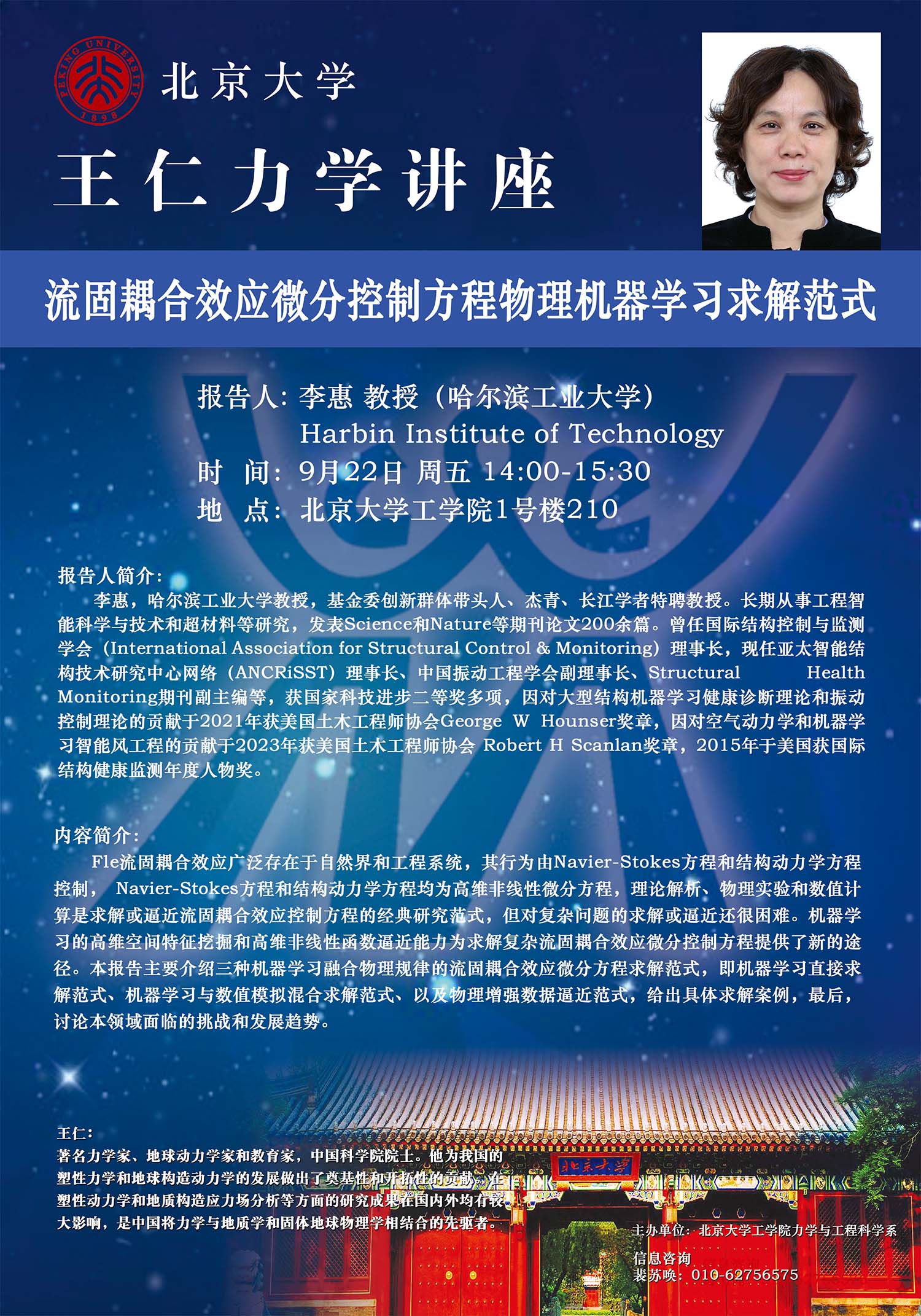 王仁力学讲座【9月22日】:流固耦合效应微分控制方程物理机器学习求解范式