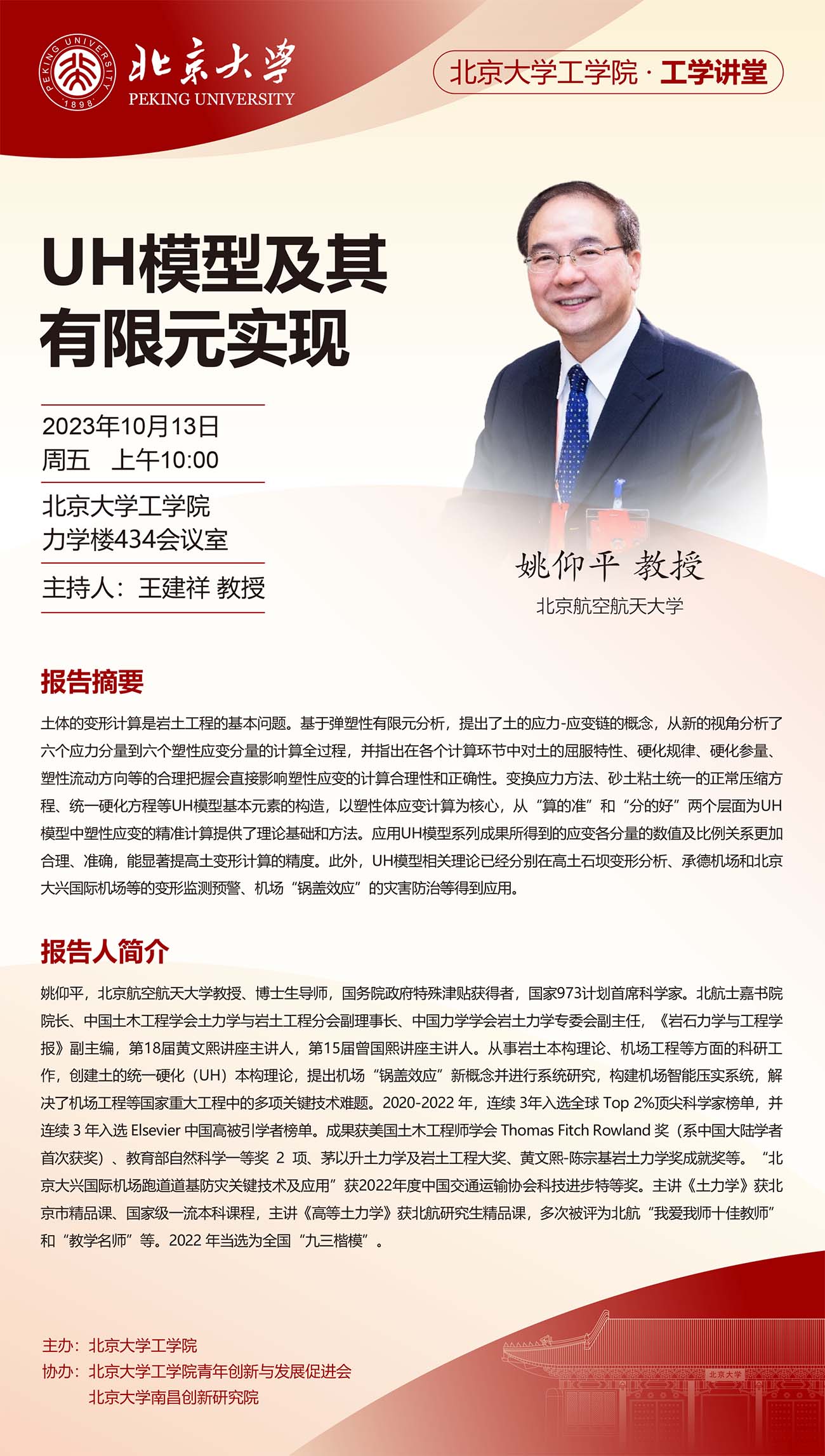 工学讲堂【10月13日姚仰平教授】:UH模型及其有限元实现