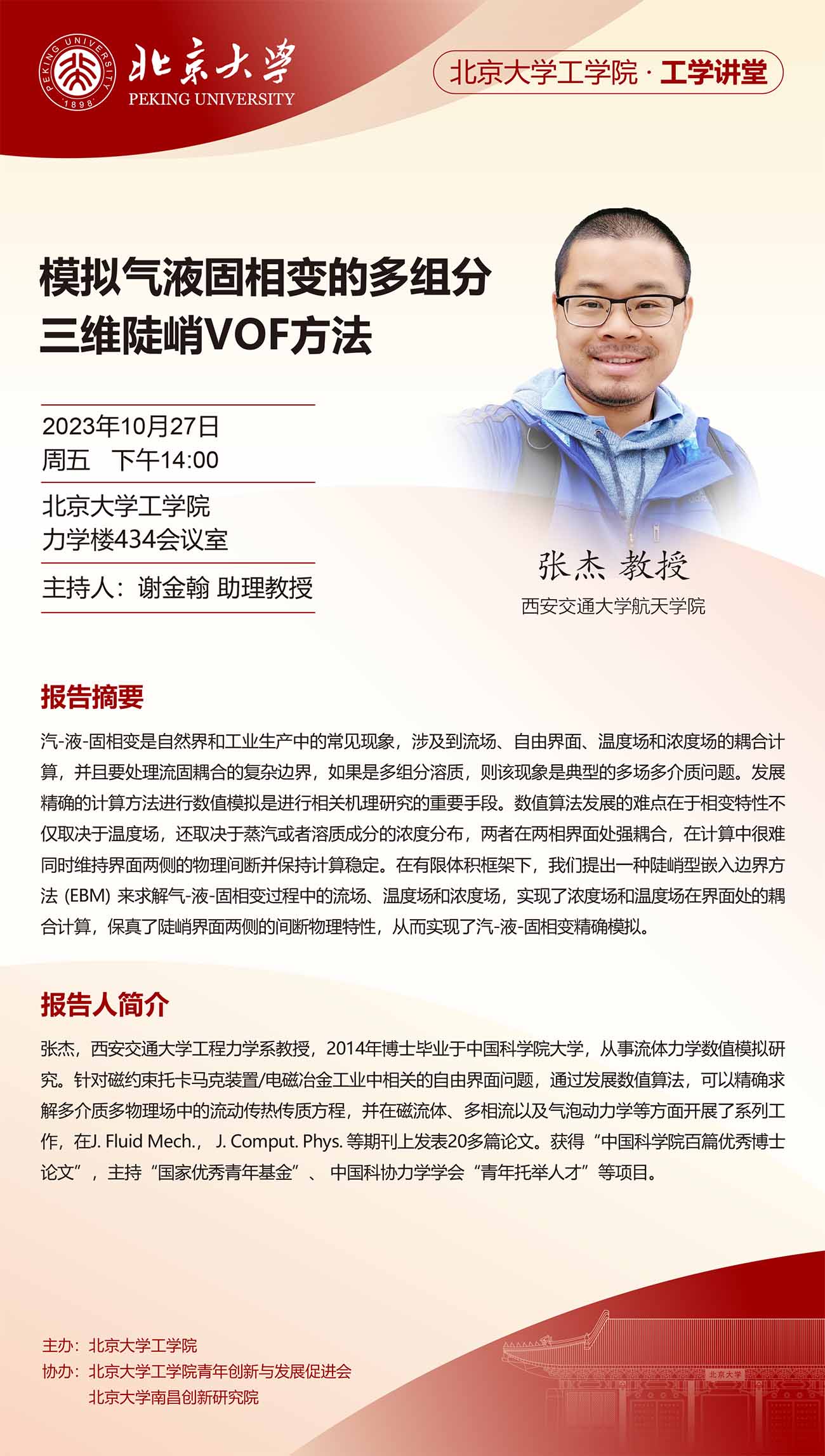 工学讲堂【10月27日张杰教授】:模拟气液固相变的多组分三维陡峭VOF方法
