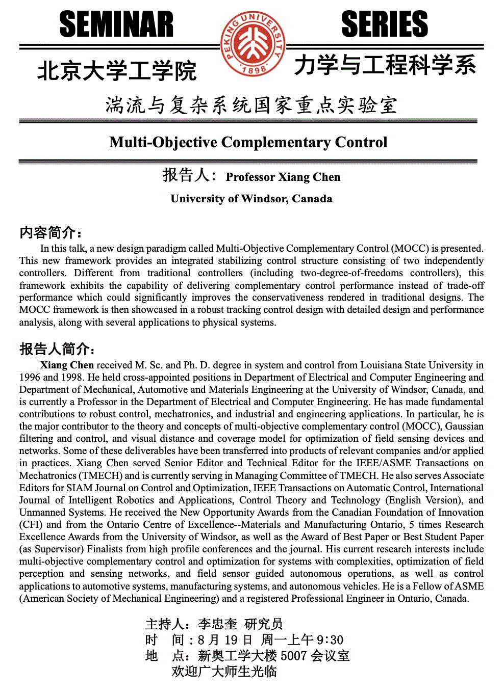 力学系学术报告【8.19陈翔】:Multi-Objective Complementary Control