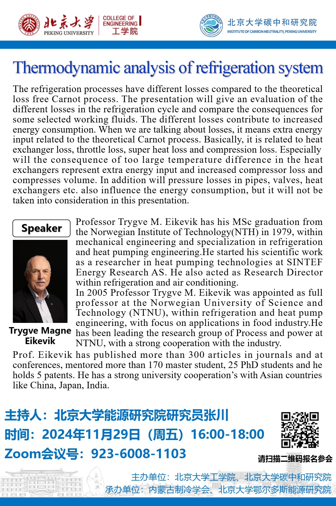 “williamhill英国官网海外名家讲学计划”项目资助报告【11.29 Trygve Magne Eikevik】:Thermodynamic analysis of refirigeration system