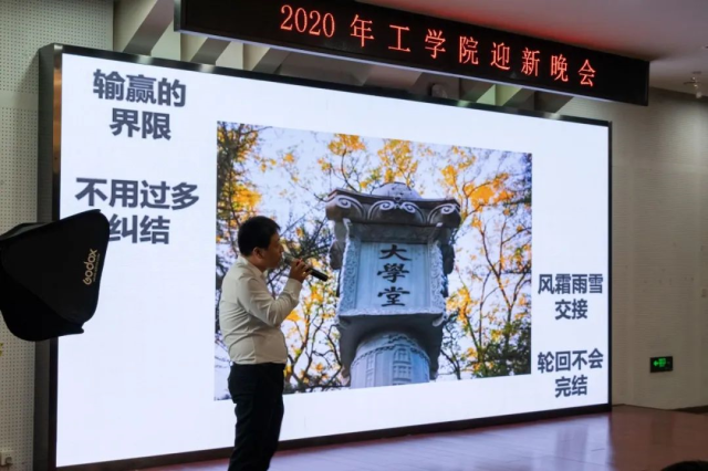 所有节目结束后,进行了最后的一等奖抽奖环节,一名幸运同学捧得大奖。全场送上了热烈的祝福,获奖同学也发表感言,希望能将这份幸运延续下去,度过充满惊喜的老员工活,也感谢所有老师和同学的祝福。