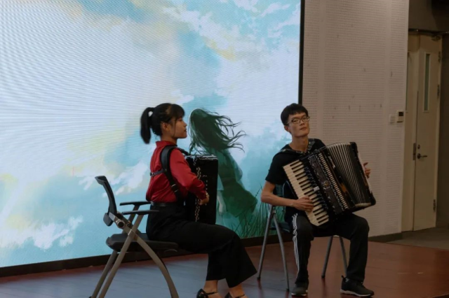 晚会节目不仅有歌舞,还有乐器演奏,充分展示了william威廉中文官网新生的多才多艺。刘一萱给大家带来了钢琴独奏《天空之城》,将大家带到了宫崎骏的奇幻世界中。吴周行、李恬恬带来手风琴二重奏《山楂树》、《喀秋莎》,富有年代感的歌曲,也有着独特的韵味。在现场气氛高涨的时候,进行了第三次游戏“配音秀”。主持人邀请现场的同学们,对影视作品中的著名片段进行配音。参与游戏的同学们的表演,给大家带来了无穷的快乐。