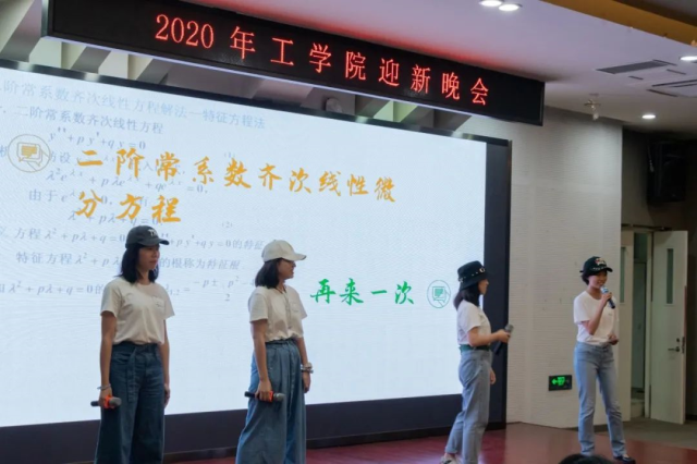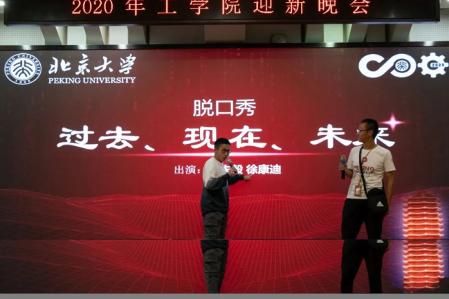 在播放暖场迎新视频后,晚会正式开始。首先,武琦、付东方两位同学给大家带来了感人的歌曲《只要平凡》。瞿朱毅、徐康迪为大家带来脱口秀《过去、现在、未来》,让晚会现场气氛逐渐热烈起来。接下来的游戏“名字接龙”和抽奖环节,同学们踊跃参加,欢笑与掌声一片。