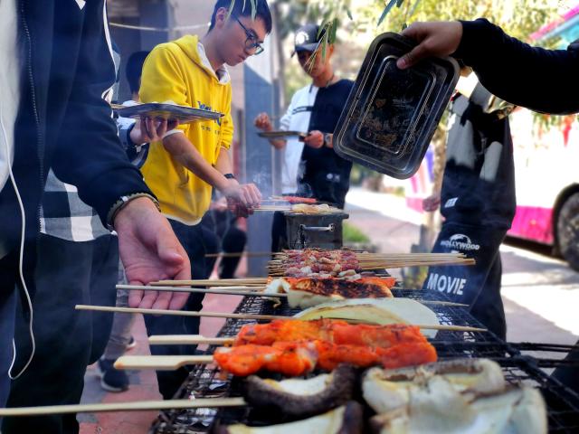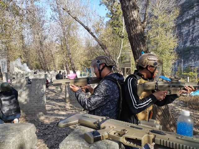 午餐为自助烧烤,同学们分工合作,互帮互助,主动地把自己烤出来的美食与同学们以及带队老师分享。在午饭之时,几只猕猴的到来也为大家增添了几分欢乐。午饭后稍作休整,大家前往体验真人CS。在欢乐的游戏中集体的默契得到培养。