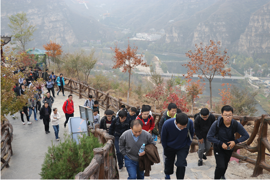 早上7:15同学们在邱德拔广场集合完毕登上了大巴车前往目的地。10点左右,大家站在山脚下开始了上午的登山之行。同学们拾阶而上,活力满满,同行的老师们也不时参与到同学们的交谈中,询问关心同学们的生活和学习情况。在半山腰休息期间,朱怀球副经理还向同学们介绍了同行各系老师代表,并由各系老师对所在系的基本情况进行了详细的介绍,促进了同学们对各系专业的了解,为同学们未来专业选择提供了助力。