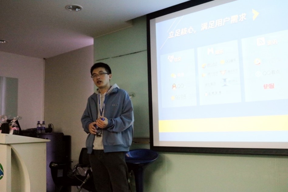 首先,同学们参观了腾讯展览馆。讲解员为大家详细介绍了腾讯的发展历史、组织架构、业务构成等等。随后,讲解员带领大家参观了公司的办公及休闲运动区。