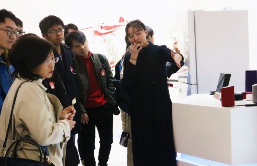 参访团首先参观了京东集团总部的展览馆,讲解员为大家介绍了京东集团的发展历史和多元化的产业体系,同时详细向大家讲解了行业领先的智能物流技术如何提高效率,如何解决偏远地区运送交通不便的问题。讲解员还带领同学们体验了无人售货超市等充满科技感的产品。亲自体验之后,同学们都惊叹京东智能技术极大地方便了人们的生活。