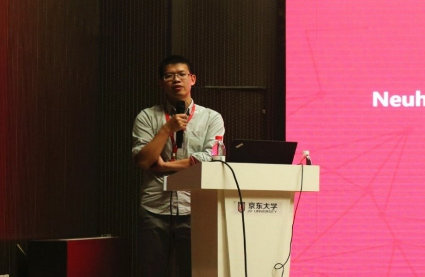 随后,京东AI平台与研究部算法科学家陈蒙给大家详细介绍了公司的人工智能业务。他提到目前京东在图形识别和自然语言处理领域取得了突出的成果,并将利用新技术方便人们的生活,能好的服务社会。