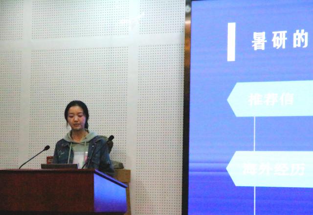班会还设置了留学保研经验分享环节, 2015级优秀本科生代表汪靖、张琨、胡依雯、滕郁骏、陈婉雯、钱佳琛、安钰、李培豪、李坤宜、张育宁、孔令宇10位同学轮流讲述了自己的出国申请或推免保研经历,并总结了相应的心得体会与经验教训:如果准备出国,需要思考自己的兴趣与动机所在,制定合理的时间线,做好本研、暑研、英语、文书、面试等方面的准备;如果准备保研,则需要选择心仪的专业与导师,提前建立联系并尝试科研,并积极关注夏令营重要时间节点。