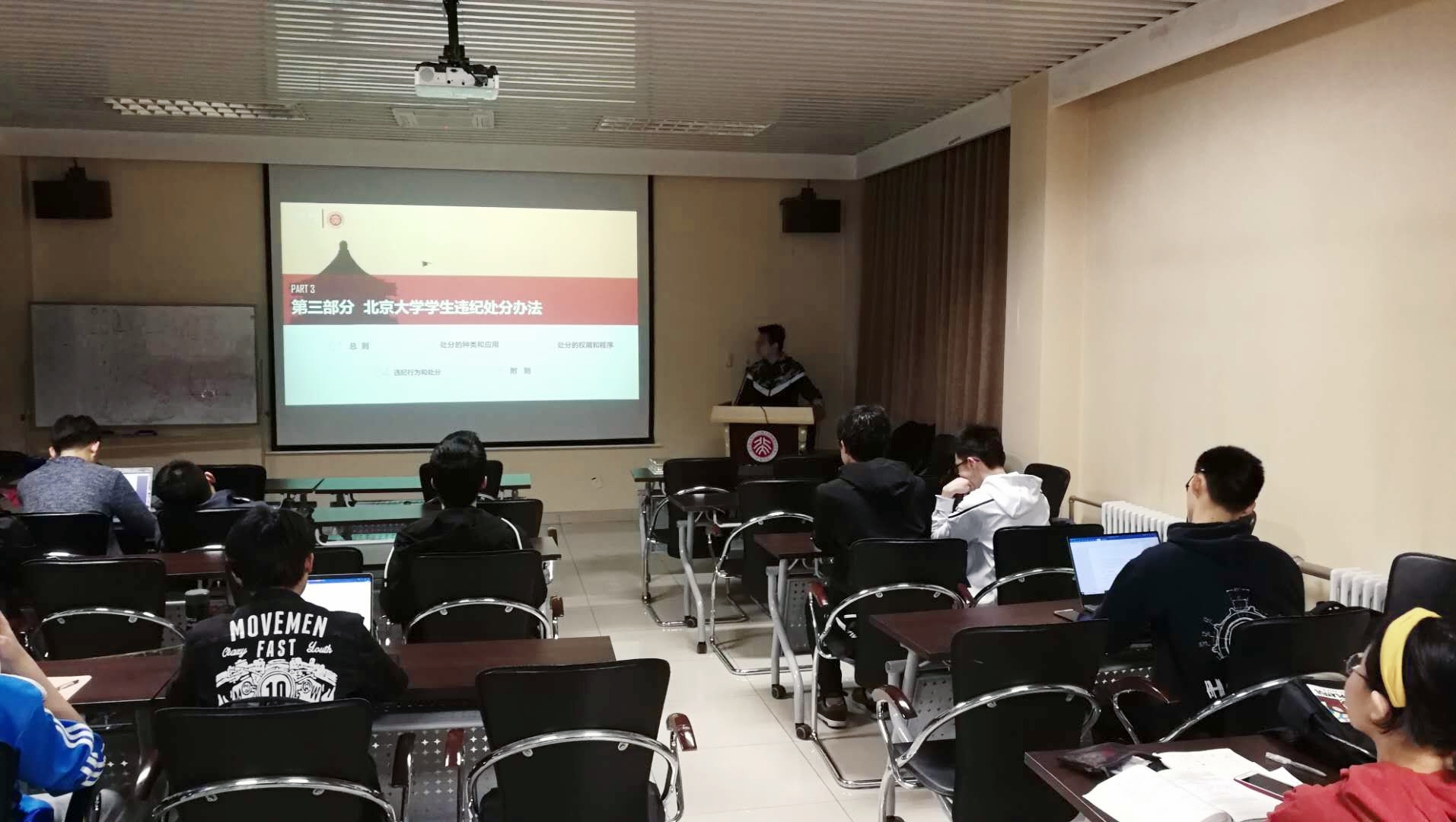 班会分为专题学习与知识竞答两个环节。在学习环节,由班长张盛涵与团支部书记刘洋两位同学带领大家一同学习,着重讲解了《williamhill英国官网本科考试工作与学习纪律管理规定》、《williamhill英国官网本科生学籍管理办法》以及《williamhill英国官网员工违纪处分办法》中与同学们的学习生活密切相关的部分。