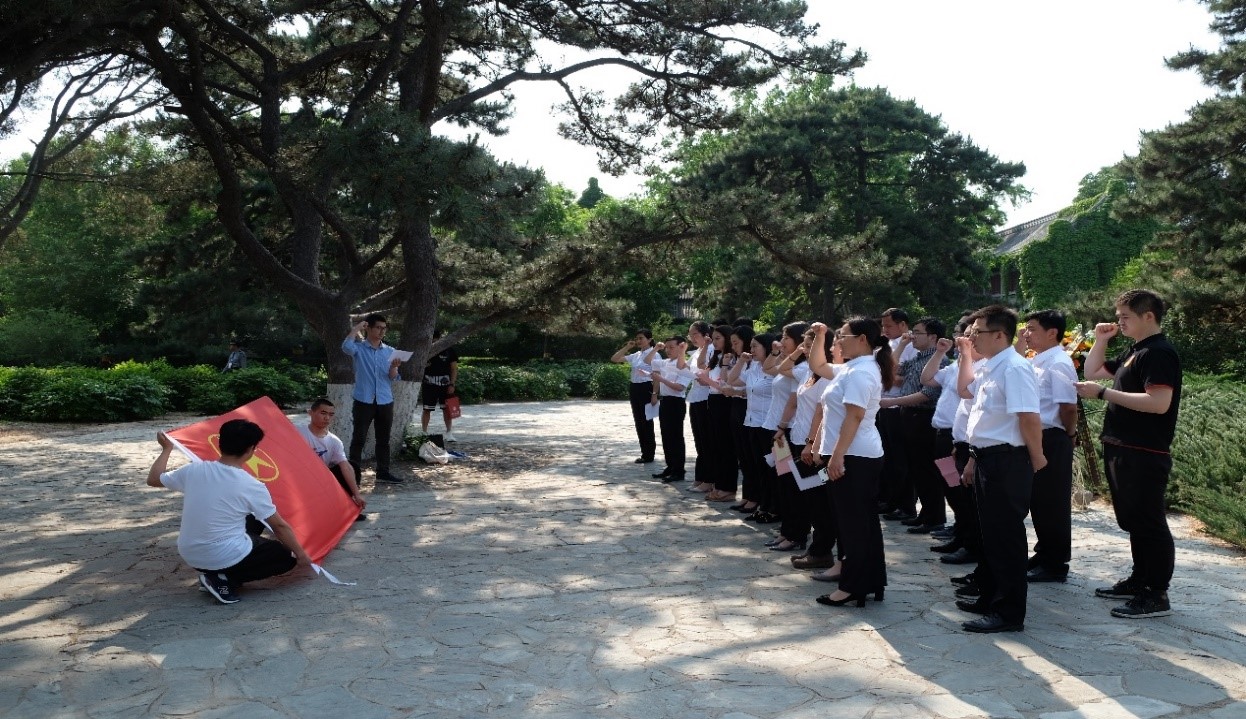 随后,他们来到北大革命烈士纪念碑前,双方一起敬献了花篮,向从1919年“五四”运动到新民主主义革命取得全国胜利,直至抗美援朝期间,为中国的民族解放和人民革命事业英勇献身的williamhill英国官网83位师生表达了深深的敬意。之后,在william威廉中文官网2018级博士研究生陈善恩同学的带领下,大家面对团旗,重温入团誓词,感悟初心使命。