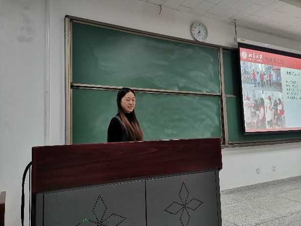 19博2班的李莉以“走出小家,守卫大家”为主题进行了分享。她通过故事和照片描绘了“老母亲”对送自己孩子去做抗疫工作在行动和语言上支持,但内心极度担忧不舍的状态。由此她请大家去想象送自己的家人上前线的医护工作人员家属的心情,正如她所言“抗疫的胜利离不开白衣天使,也少不了他们背后的默默支持的家人们”。李莉的家在东北,疫情期间下雪结冰,志愿者们不仅做体温监测、信息登记等工作,还自觉行动起来清扫积雪,与人方便,也通过活动让自己暖和起来。他们还会帮助小区的老人做些力所能及的小事,如修自行车、送菜等等。最后她讲述了一个小插曲,由于疫情影响,路上车辆很少,一次因为赶时间李莉驾驶的车发生了追尾,处理时发现原来另外一辆车的车主也在担任抗疫志愿者,也在赶赴工作岗位的路上,于是事故很快被和平解决,她俩甚至还通过这次的相识成为了好朋友。但李莉还是提醒大家“出门在外,安全第一”。