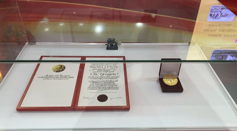 屠呦呦诺贝尔奖奖牌及事迹展示