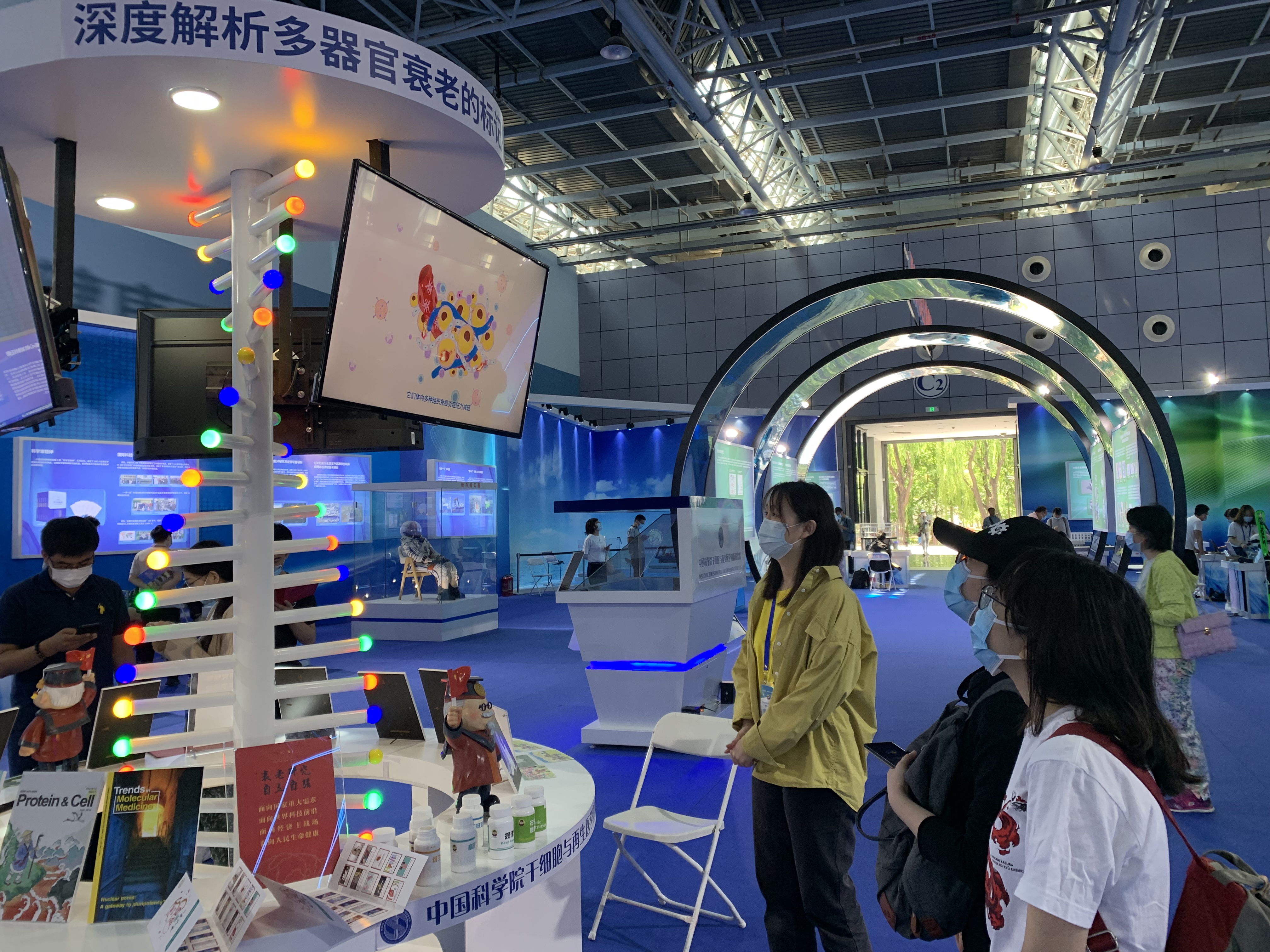 科技周主场室内外约5000平方米展区中,科技展品琳琅满目,量子点光谱传感技术、思元系列AI芯片及加速卡、50kg级电驱动四足仿生机器人、新冠灭活疫苗、高速运动目标智能跟踪拍摄系统、中国杂交小麦、智轨等150余个展项为参观的同学们带来了一场科技盛宴。