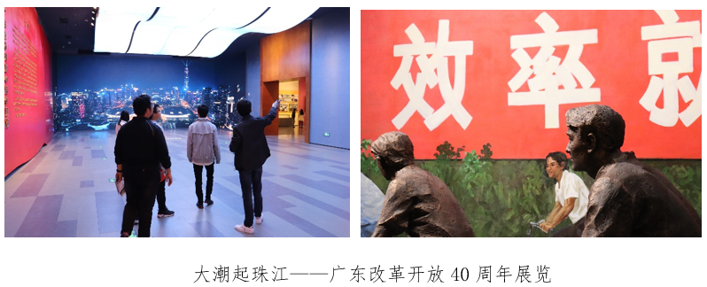 最后同学们前往参观“大潮起珠江——广东改革开放40周年展览”。同学们走入展厅,首先映入眼帘的便是3面巨大的屏幕,播放着以“大潮起珠江”为主题的视频资料。在接下来的参观中,同学们欣赏到了诸如场景还原、实物展示、模型沙盘等多样的展陈形式,使展览没有丝毫的枯燥感。展厅中的场景画与雕塑更是美不胜收,给人一种身临其境的感觉,使人无比真切地感受到改革开放40年来广东的飞速发展与无限活力。展馆中还有许多的现代先进科技产品,并可以亲身体验。同学们深感科学技术力量之强大以及科学技术在深圳乃至全国的发展过程中科学技术所起的至关重要的作用。