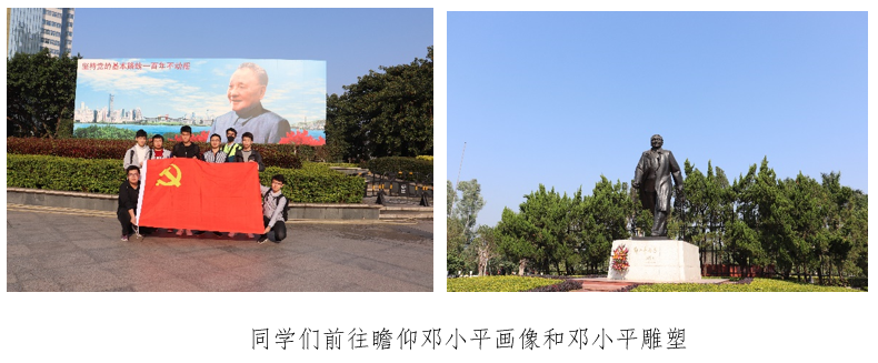 怀着对这位世纪伟人的崇敬与仰慕,同学们来到邓小平画像广场,在巨幅画像前感受一位老人对这片土地的热爱、一座城市对一位老人的深情;莲花山的雕塑,小平同志身披风衣,极目远方,气宇轩昂,步伐坚实,大步向前行走,阔步行进的姿态也深深感染着每一位在场同学。