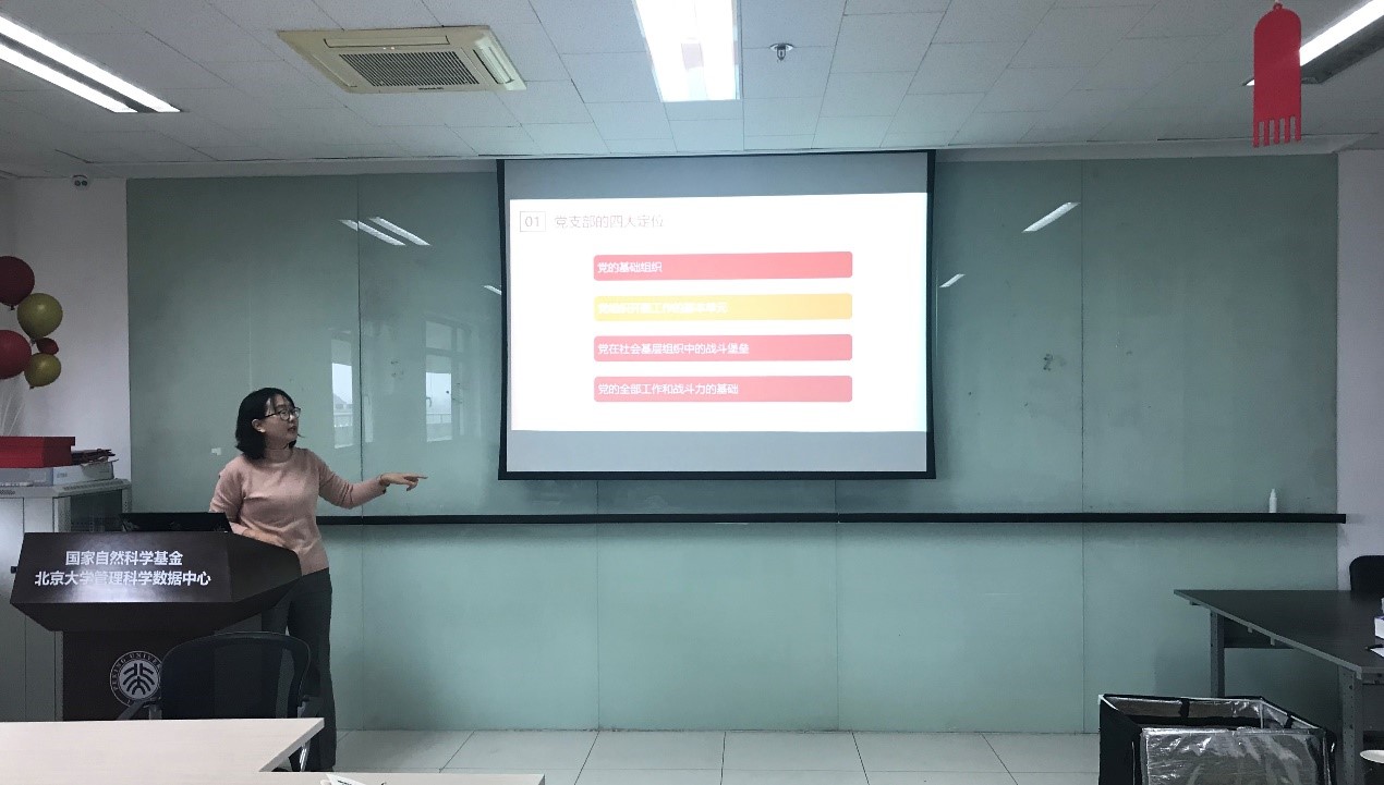 会议开始后,张婧带领各党支部书记对《条例》进行学习。《条例》是我们党历史上第一部关于党支部工作的基础主干法规,为新时代党支部建设提供了基本遵循。张婧为大家系统阐释了党支部工作的三大定位、七项职责、五条原则、八项基本任务和高公司党支部的重点任务,具体介绍了条例对“三会一课”、主题党日等组织生活的规范性要求。她希望党支书们可以认真学习条例,领悟中央精神,落实党要管党、全面从严治党要求,结合员工党支部的重点任务,做好带领党员和团结同学的工作,全面提升党支部的组织力,充分发挥党支部的战斗堡垒作用。