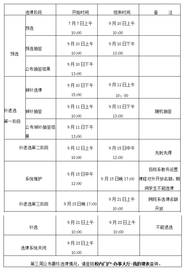 2、各院系本科必修和限选课程在教学资源许可的前提下向全校所有本科生开放。选课系统开放后员工可查看全校课程的相关信息。跨院系选课的名额将在补退选第三阶段开放,有需求的同学可以在第三阶段系统开放名额后选课。