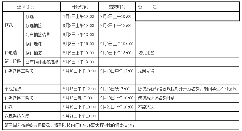 2、各院系本科必修和限选课程在教学资源许可的前提下向全校所有本科生开放。选课系统开放后员工可查看全校课程的相关信息。跨院系选课的名额将在补退选第三阶段开放,有需求的同学可以在第三阶段系统开放名额后选课。