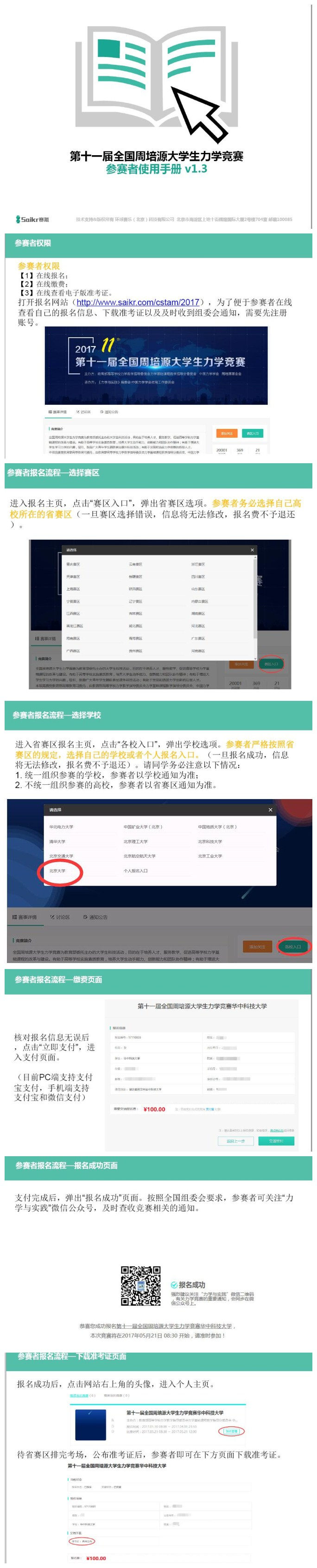 (3)报名办法:2017年4月1日前参赛个人通过报名系统(网址:http://www.saikr.com/cstam/2017)在线报名。报名费 100 元/人,报名后未参加竞赛者恕不退还报名费。