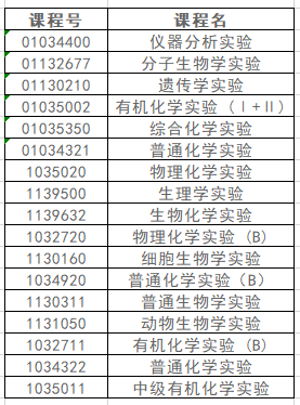 3.根据院系对实验课程的要求,生物、化学类实验课不允许中期退课,有以下课程:
